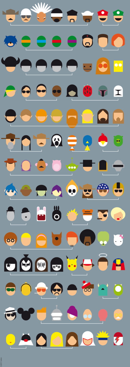 - Minimalism beloved Videogame Characters![]() KEYS: Mario (mario bros), Pacman (pacman), Link (Zelda), Sonic (Sonic the hedgehog), Bomberman (Character from bomberman NES), Lara croft (Thomb rider) , Toad (mario bros), Ken (Street fighter), Riu (Street fighter) , master chief (Halo) ,Luigi (mario bros) ,Megaman (megaman), Manny calavera (Grim Fandango), Sam fisher (Splinter Cell),Josef (Machinarium),The Prince (Prince of persia), Alien 1 (Space invaders), Alien 2 (Space invaders), Duke Nukem (Duke Nukem), Donkey kong (Donkey kong country), Diddy kong (Donkey kong country), Bill (Contra) ,Lance (Contra) ,Guybrush Threepwood (menkey island), Snafu (intellivision), Yoshi (Mario bros), Samu (metroid), Earthworm Jim (Earthworm Jim), Harry (Pitfall),Chun Lee(Street fighter), Billy Lee (double dragon), Jimmy Lee (double dragon), Peter Pepper (burger time), Simon Belmont (Castlevania), Gordon Freeman (Half-life), Kratos (God of war), Sub zero (Mortal kombat), Princess Peach (Mario bros), Solid Snake (Metal gear solid), Kirby (Kirby's Dream Land), Scorpion (Mortal kombat), Ryu Hayabusa (Ninja gaiden), Nemo (little nemo the dream master), Moto racer (Exitebike), Centipide (Centipede Atari), Little mac (punch out boxer), Zeke (Zombies Ate My Neighbors), Any character from (the sims), Pikachu (pokemon), Big red angry bird (angry birds), Any character from (world of warcraft), Casey (kid chamaleon), Dante (Dante’s inferno), Popo (Ice climber), Big Daddy (bioshock), Larry (leisure land larry), Jill Valentine (Resident evil), Tetrominos (Tetris), Cloud Strife (final fantasy), Master Higgins (adventure island), Thief (lock ‘n’ chase), Cody, (final fight),Twinsen (twinsen’s odisey), Lemming (Lemmings), Sephiroth (final fantasy), Keiji Thomas (kung fu marter), Combo (killer instinct), Meat boy (super meat boy), From any first person shooter game (the crosshair) KEYS: Mario (mario bros), Pacman (pacman), Link (Zelda), Sonic (Sonic the hedgehog), Bomberman (Character from bomberman NES), Lara croft (Thomb rider) , Toad (mario bros), Ken (Street fighter), Riu (Street fighter) , master chief (Halo) ,Luigi (mario bros) ,Megaman (megaman), Manny calavera (Grim Fandango), Sam fisher (Splinter Cell),Josef (Machinarium),The Prince (Prince of persia), Alien 1 (Space invaders), Alien 2 (Space invaders), Duke Nukem (Duke Nukem), Donkey kong (Donkey kong country), Diddy kong (Donkey kong country), Bill (Contra) ,Lance (Contra) ,Guybrush Threepwood (menkey island), Snafu (intellivision), Yoshi (Mario bros), Samu (metroid), Earthworm Jim (Earthworm Jim), Harry (Pitfall),Chun Lee(Street fighter), Billy Lee (double dragon), Jimmy Lee (double dragon), Peter Pepper (burger time), Simon Belmont (Castlevania), Gordon Freeman (Half-life), Kratos (God of war), Sub zero (Mortal kombat), Princess Peach (Mario bros), Solid Snake (Metal gear solid), Kirby (Kirby's Dream Land), Scorpion (Mortal kombat), Ryu Hayabusa (Ninja gaiden), Nemo (little nemo the dream master), Moto racer (Exitebike), Centipide (Centipede Atari), Little mac (punch out boxer), Zeke (Zombies Ate My Neighbors), Any character from (the sims), Pikachu (pokemon), Big red angry bird (angry birds), Any character from (world of warcraft), Casey (kid chamaleon), Dante (Dante’s inferno), Popo (Ice climber), Big Daddy (bioshock), Larry (leisure land larry), Jill Valentine (Resident evil), Tetrominos (Tetris), Cloud Strife (final fantasy), Master Higgins (adventure island), Thief (lock ‘n’ chase), Cody, (final fight),Twinsen (twinsen’s odisey), Lemming (Lemmings), Sephiroth (final fantasy), Keiji Thomas (kung fu marter), Combo (killer instinct), Meat boy (super meat boy), From any first person shooter game (the crosshair)