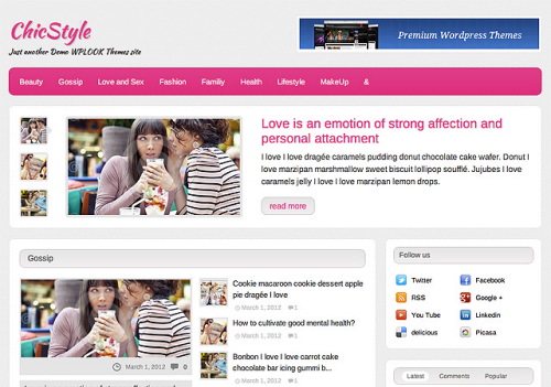 ChicStyle is a stylish WordPress magazine that is addressed to all who love talking about fashion, lifestyle, health, gossips and other. Among the most interesting features integrated into this theme you can find easy customisation and responsive design that allows for easy viewing on mobile devices and tablets.