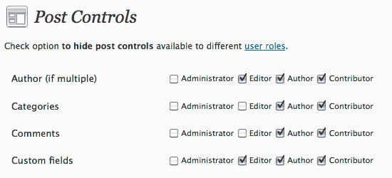 Post Control from WordPress CMS Modifications gives you complete control over your write options for every user level/role. It not only allows you to hide unwanted items like custom fields, trackbacks, revisions etc. but also gives you a whole lot more control over how WordPress deals with creating content.