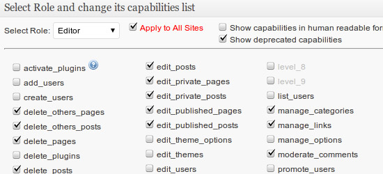 User Role Editor WordPress plugin allows you to change standard WordPress user roles capabilities with easiness of a few mouse clicks. Just turn on check boxes of capabilities you wish to add to the selected role and click “Update†button to save your changes. That’s done. Add and tune your own custom roles which you can assign to the users then. You can create new role as a copy of existing one. Delete self-made roles. Change defaul user role.