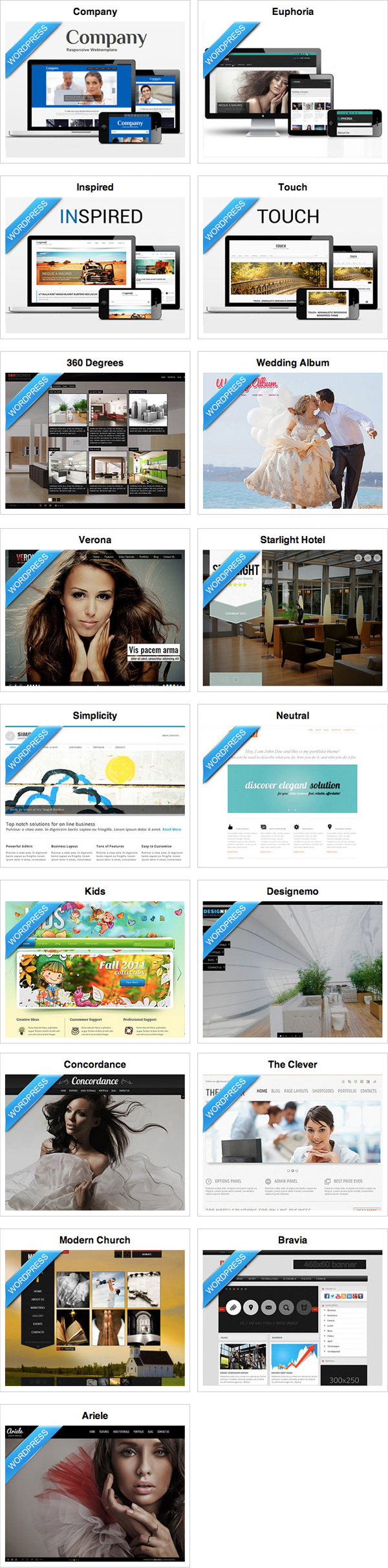 - 17 WordPress Themes This bundle contains 17 different WordPress Themes. That should be more than enough to cover the various categories your site or blog fits into.