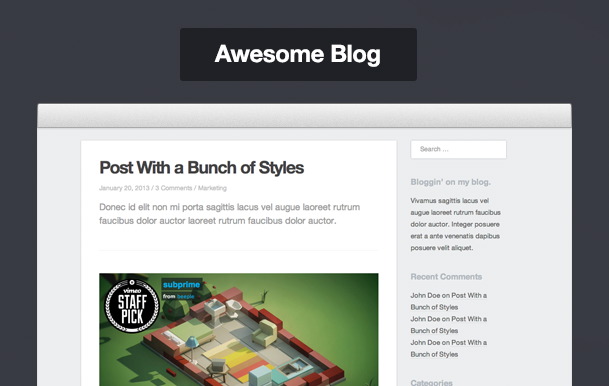 It supports post formats for the blog. You can add a quote, video, link, gallery or just a normal blog post to spice it up a little bit!