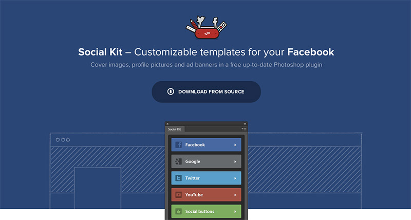 Here we have a great photoshop plugin called Social Kit. Social kit, once installed it will give you the latest editable social media templates. No more create your own manually by taking screenshot. You will get full editable layers, masking, social profiles page and pages. Social Kit currently support 4 social networks - Facebook, Youtube, Twitter and Google+.