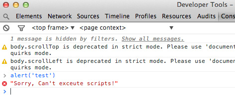 throw "Sorry, Can't execute scripts!";