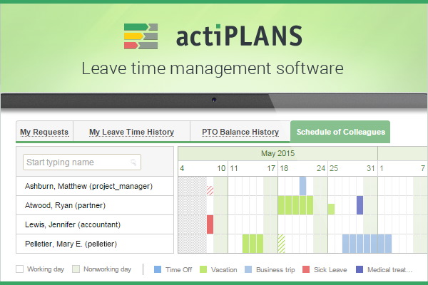 actiPLANS is a perfect tool to help you get a clear view of your company’s leave schedule. Regardless of the size of your company, an automated process for leave requests and approvals will help you save a lot of time and money. With actiPLANS you will be able to easily calculate paid time off balances and always have a complete leave time history. This software is very easy to use and has flexible settings which allow you to create the rules you need in order to fit it to your leave time policy. Thanks to actiPLANS you won’t have to send dozens of emails back and forth in order to request or grant a leave. It will also be of great help in reducing unscheduled absences and human errors.