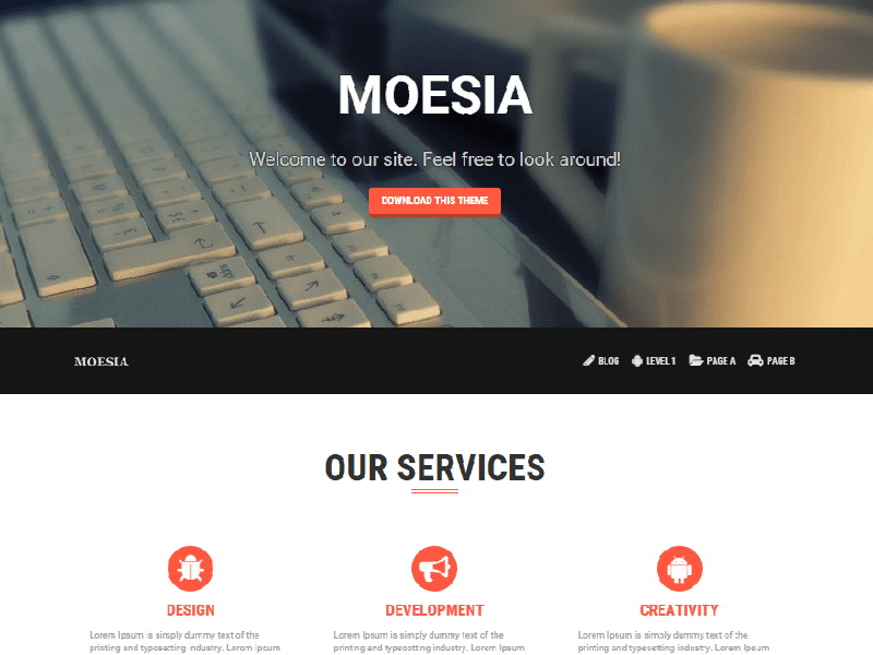 Full screen image, Parallax and a lot of hover effect - these are the main features of this theme. Beautiful flat widgets contribute well to the design. Moesia can become a great helper in the creation of a beautiful one-page WordPress website.