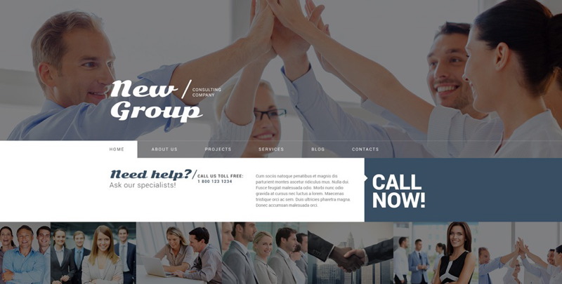 Pay attention to the image slider in this template. Also, look at the ‘Featured projects’ section: there’s a great slider, too. The theme creators managed to combine them in one theme and yet kept the website clean looking whilst maintaining ease of perception. By the way, if you place your cursor on the images below the slider, you’ll see nice and unobtrusive hover buttons.