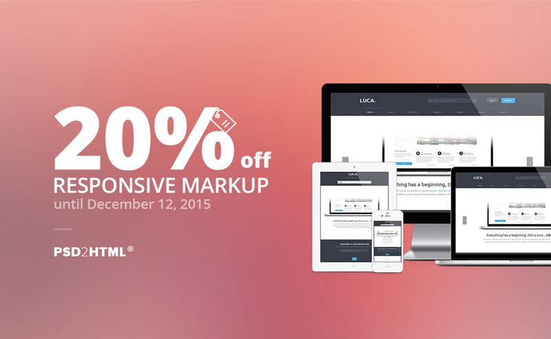 Today, they are offering a special deal! Just use this code – N2134I84 – and get 20% off on your first responsive HTML5/CSS3 order. Hurry, the offer expires on December 12, 2015!