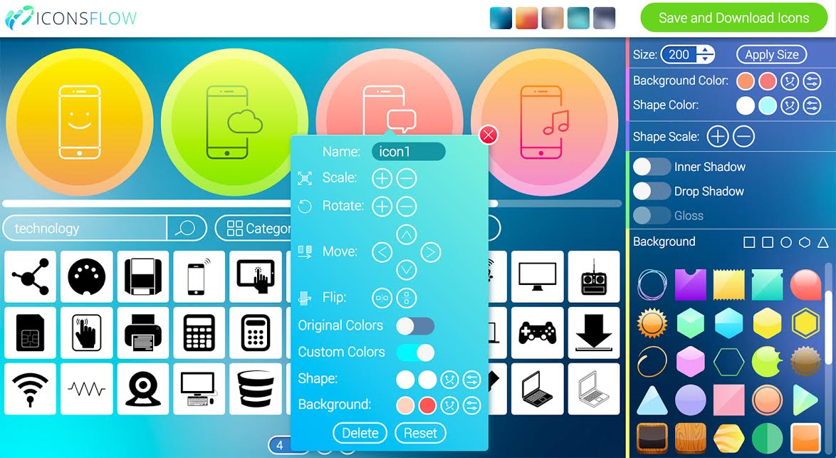Check out a really easy to use tool for creating professional icons! 200 000+ trendy styles and effects from which you can choose, IconsFlow releases a new set of icon sets carefully created for you every week so you can keep a fresh design of your application or layout. You can download your icon sets in SVG, PNG and ICO formats.