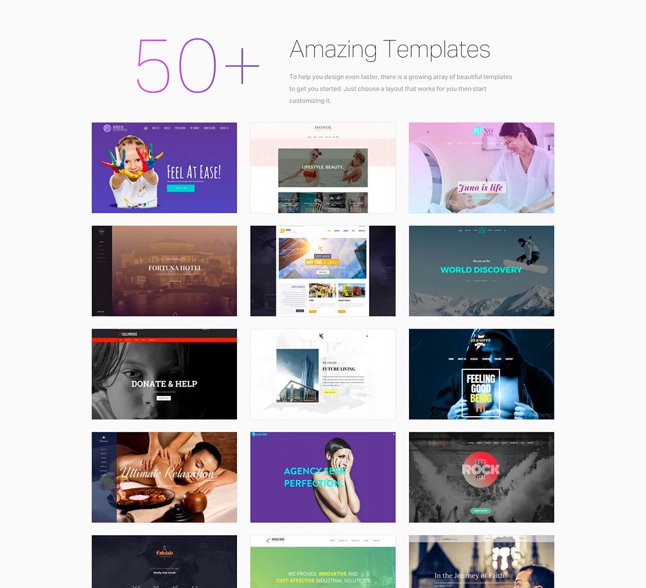 Once I finished the installation process, as with most themes, the fun creation part began! Most themes have pre-made templates for users to choose from depending on which sector they’re coming from, but I did not expect to find over 50 template options to pick from! Take a moment and have a look at just a handful of Jupiter V5 Templates. Organized in the categories of Business, Community, Creative, Food, Health, Leisure & Entertainment, Shop, Style, and Technology, you can easily locate the group of templates most relevant to your niche and go from there. As was mentioned before, it’s not uncommon to find pre-made templates in many themes though I should note that Jupiter V5 is unique in that regardless of which template you start with, you’re given a great deal of creative space and flexibility in changing any aspect within the template.