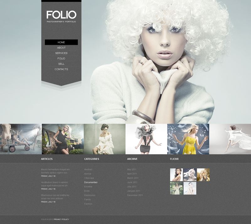 This template has a truly clean design with big images, a minimal set of colors and all the necessary info placed at the bottom of the website. If you need a nothing-superfluous design, this could be the one. Check it out!