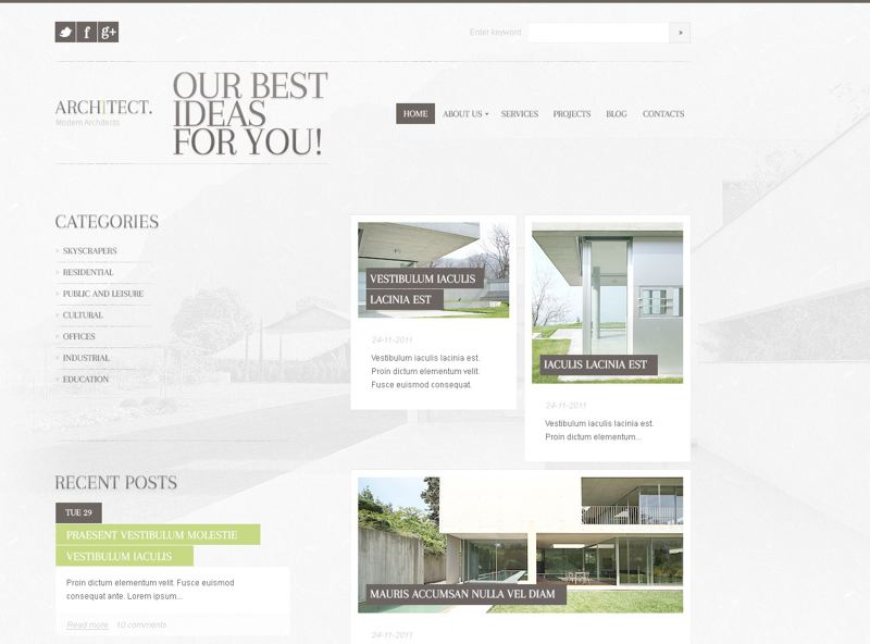 Speaking of serious corporate websites, this PSD template could serve as one, too. Take a look at its strict design, environmental-friendly widgets, recent projects presentation and other details which are the factors which may boost the conversion in the future.