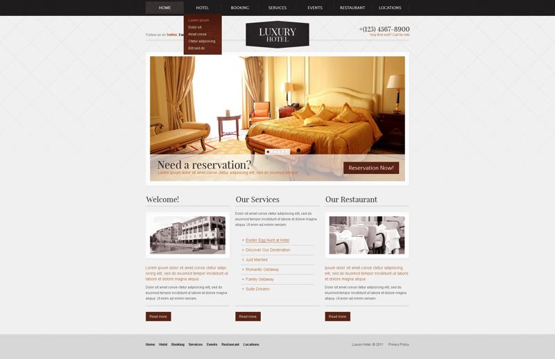 A website of a hotel should be very much like a hotel itself - it needs to be just as cozy and welcoming. The calm colors used in this hotel PSD template make it suitable for many types of projects like blog or a corporate website.