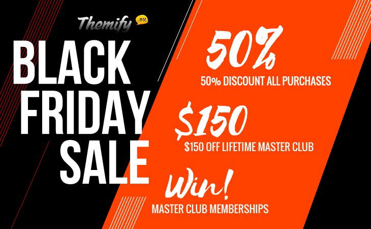 Themify wants to make happy everybody so they launched some awesome deals for Black Friday and Cyber Monday (comes in 3 days). There 3 deals that nobody can miss. First is a discount of 50% to all WordPress themes, plugins, and Club Memberships, without the Lifetime Master club. To have this offer, you need to use the coupon BLACKFRIDAY. Using the code BLACKFRIDAYLIFE, you will get $150 for the Lifetime Master club memberships. The cost will be just $249 and you will get lifetime access to all their products, support, and updates.