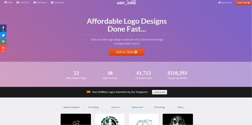 48HoursLogo is one of the top logo contest websites on the Internet. Dozens of logo contest are launched each day with prize ranging from $99 up to $1000. Collectively, the 48hourslogo design community has completed 40,000 contests with more than 3 million logos submitted.