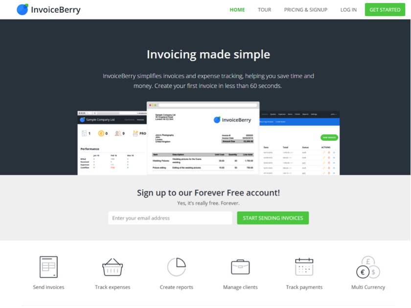 InvoiceBerry is a popular choice for small and medium businesses but also larger ones. Creating, customizing and tracking invoices takes seconds and the platform has also a free for ever plan, that will show you while working, how cool is everything. Register for the free plan.