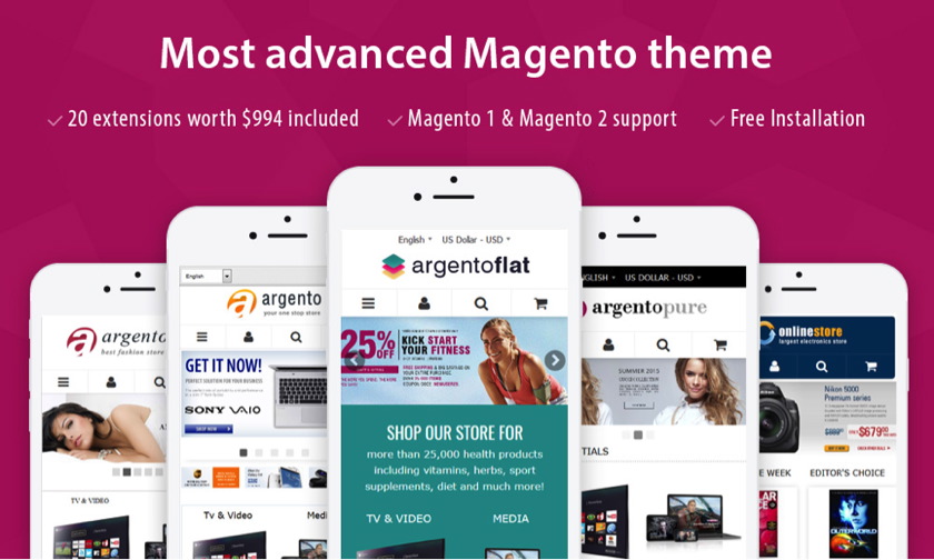 Whenever you want to start a new project, like an e-commerce website, keep in mind 2 words: ArgentoTheme. It’s the most powerful Magenta web store theme that can be installed and configured really fast. It has multiple designs are it works brilliantly. Start your online store right now!