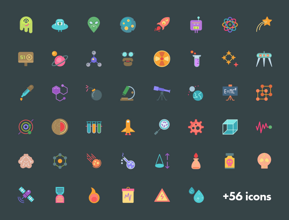 These science icons are perfect for website, web app, print designs. There are available in AI, EPS, JPG, PDF, PNG and SVG with filled, flat and outlined styles.