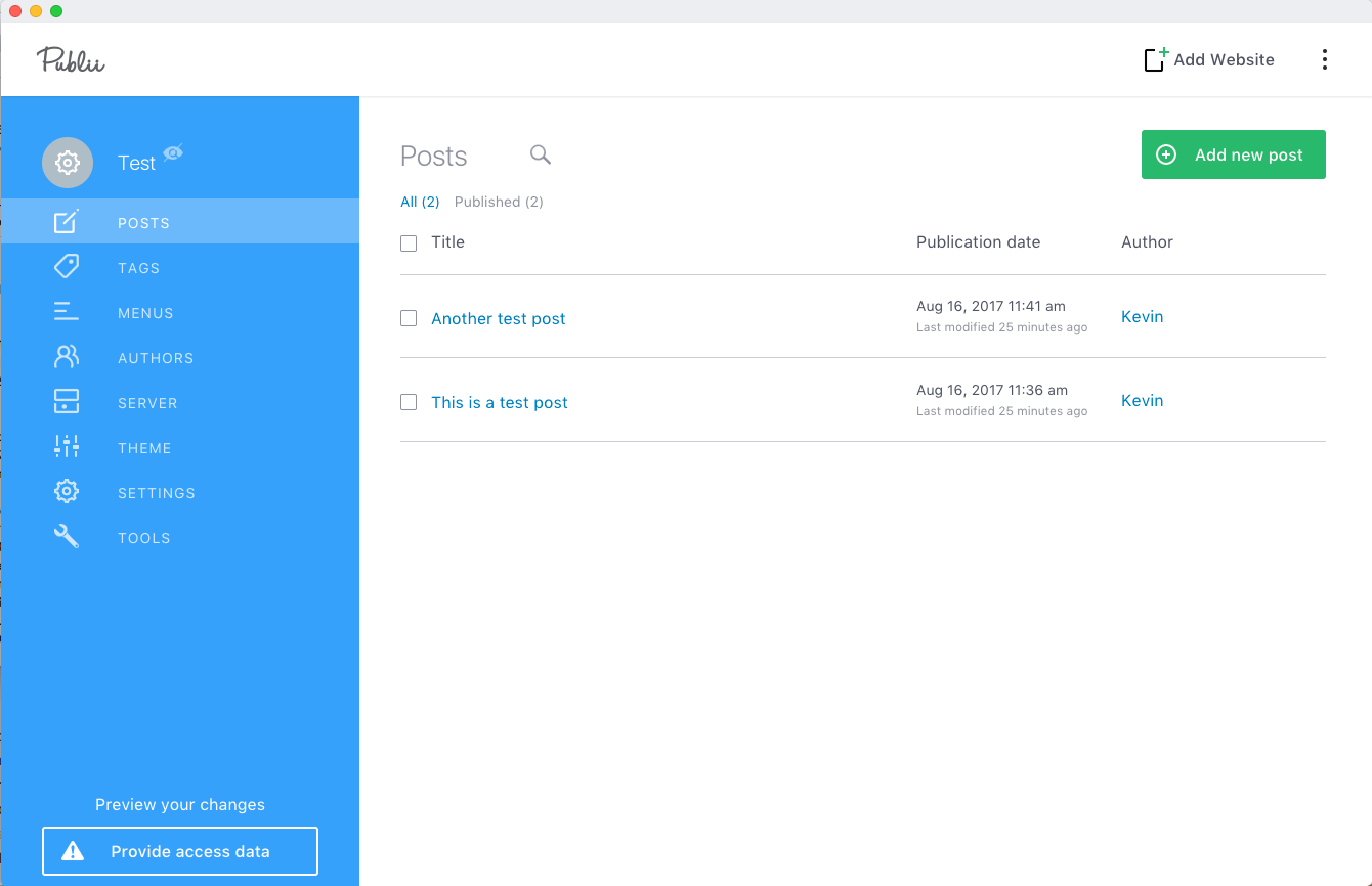 Here we have a pretty awesome blogging platform called Publii. Unlike most of the flat file systems, Publii is actually a desktop app available for both Windows and Mac. It generates static HTML files and then you can SYNC it to your server with its One-Click Synchronisation which supports Amazon S3, GitHub Pages, Google Cloud, Netlify and SFTP.