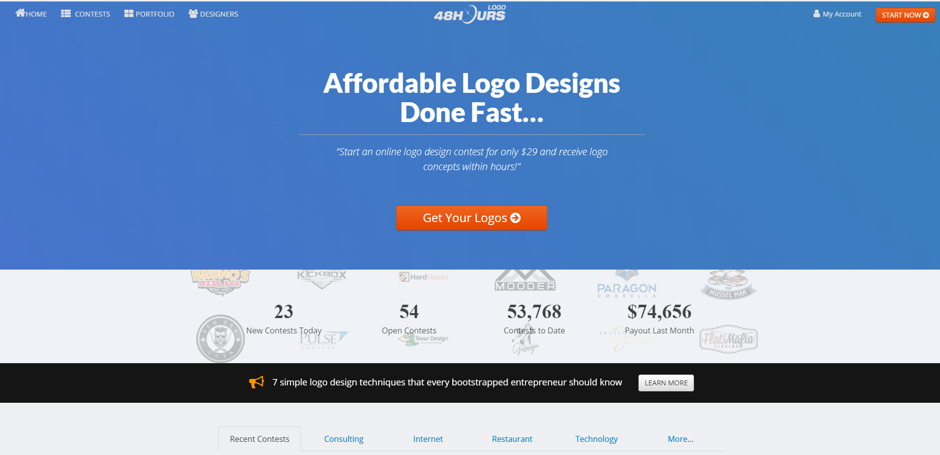 48HoursLogo is a powerful logo design platform where you can launch a contest in minutes and let talented graphic designers compete over your design. It is super simple to use, and the results are outstanding, not reflecting the small price you have to pay. Use it for new logo ideas.