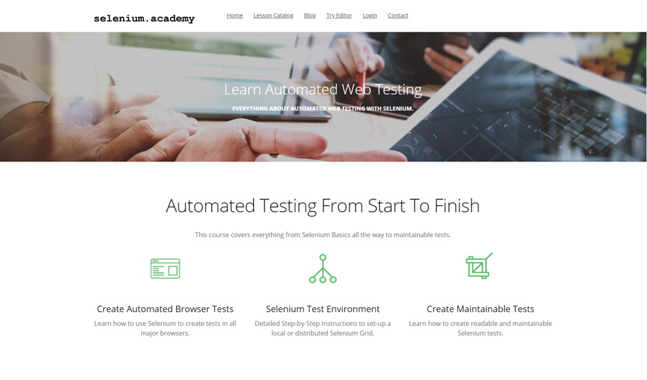 If you want to learn more about Selenium and automated testing from start to finish, stop here and check this special academy. It is loaded with more than 10 awesome courses that will explain you perfectly what all is about.