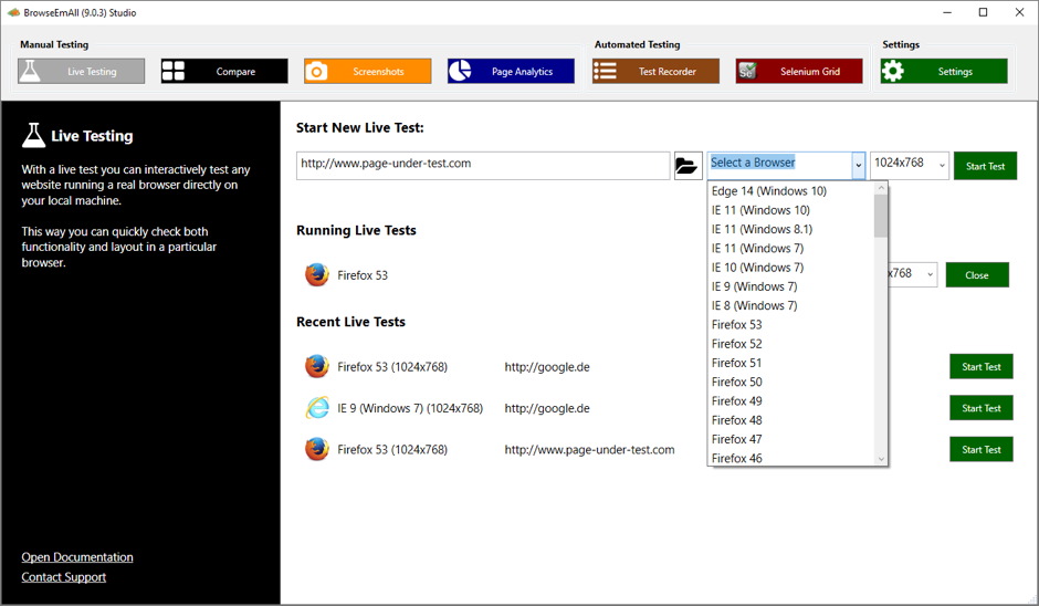 BrowseEmAll is an on-premise cross-browser testing tool for Windows, macOS, and Linux that is best suited for enterprise or offline usage. It numbers more than 10,000 happy web designers and developers and the numbers heavily increase every month.