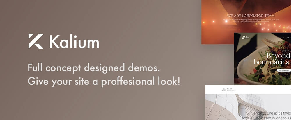 - Kalium offers a large selection of professionally-designed demos and design elements that can be imported with one click and put to immediate use