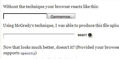 Michael McGrady invented a very neat trick that allows us to (more or less) style file upload fields. The credits for the solution presented on this page are wholly his, Only added the position: relative, a few notes and tests, and ported it entirely to JavaScript. - Uploadify | demo