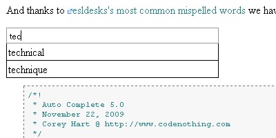Auto-complete takes input from the user, and tries to form a list of words that match the users input. The function attaches itself to the input field selected, and also creates the UL drop down from within so all you need is have the styles for it ready.
