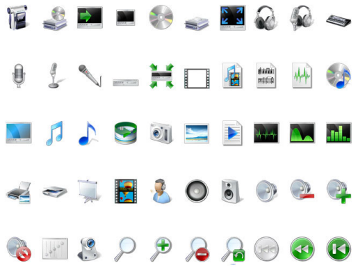 Planning to develop a mobile application or something geared towards multimedia? The multimedia icon set at Icons-Lans would be a perfect fit. This icon set is targeted for media-centered software applications and includes 58 unique icons with 502 variations. Here is a preview of the icon set: