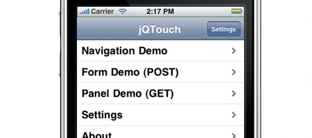 A jQuery plugin with native animations, auto list navigation, and default application styles for Mobile WebKit browsers like iPhone, G1, and Pre. - Fullsize | Demo